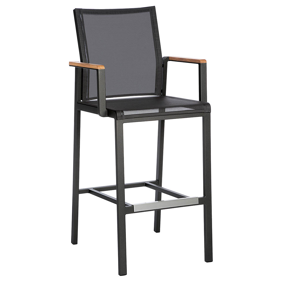 Ideal for use indoors, outdoors or poolside and perfect for dining or a leisurely drink. These counter height chairs have a footbar with a protective cover to avoid marking and are made from aluminium with teak arms. Available in North America only.