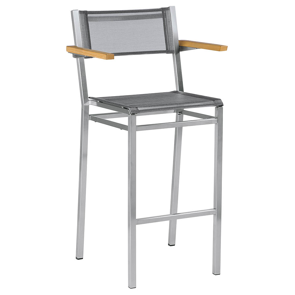 This bar chair has a Textilene® seat and a 316 marine grade stainless steel frame.